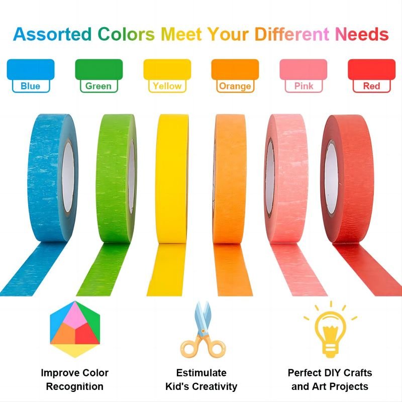 VIBRANT COLORS: the pack of masking tape comes in Yellow, Blue, Red, Green, Pink, Orange ect, which makes your art project come under the spotlight