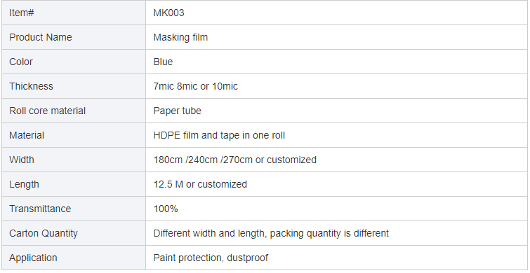 paint masking film is a professional product for automotive painting, as it withstands high temperatures up to 110°C/230°F for half an hour and 90°C/194°F for one hour. The film is easy to remove and leaves clean surfaces with no residue