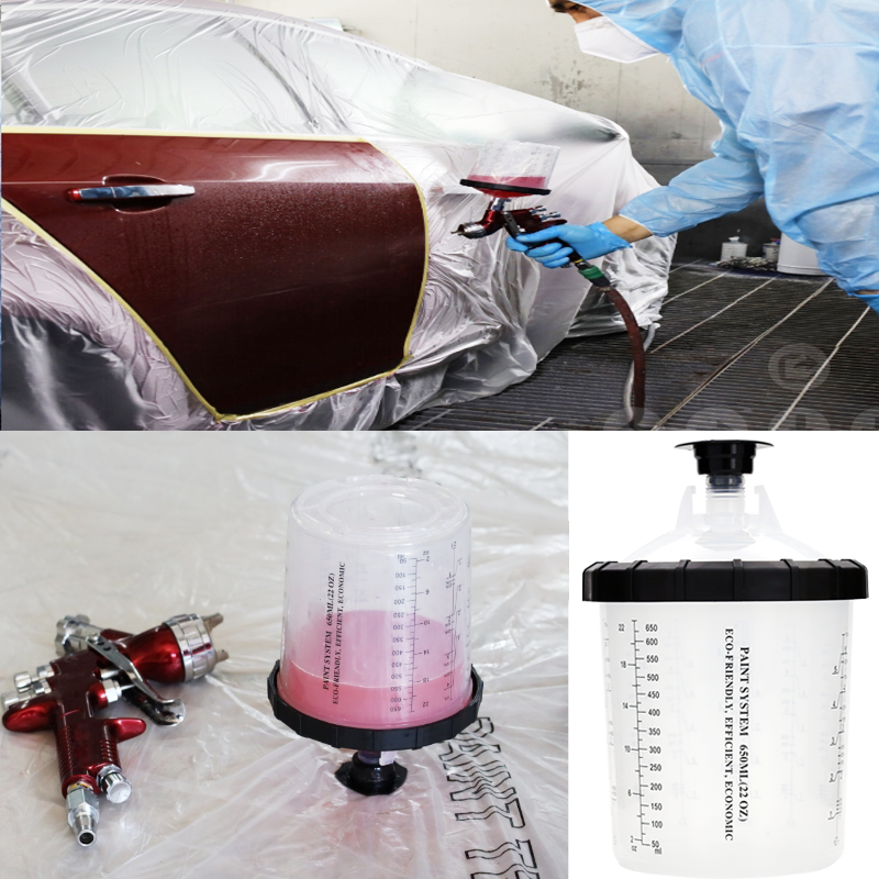 Easy to use: Our spary gun cups are provided with clear scales and mixing ratios and are suitable for common spray paint systems. The transparent spray paint cup makes it easy to see the fluid level.